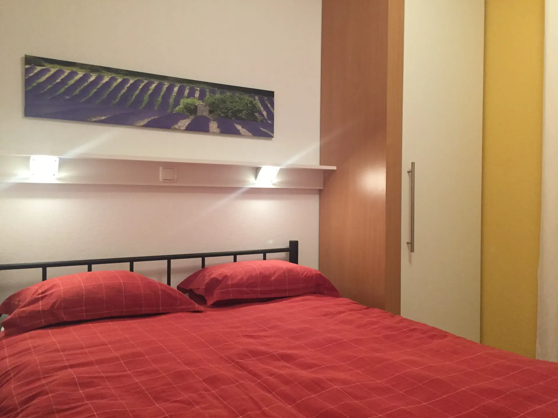Slaapkamer 1: Voorzien van tweepersoons bed (160×200), 2-nachtkastjes, leeslampjes, inbouwkast, Frans balkon met hor en luiken, ventilator.