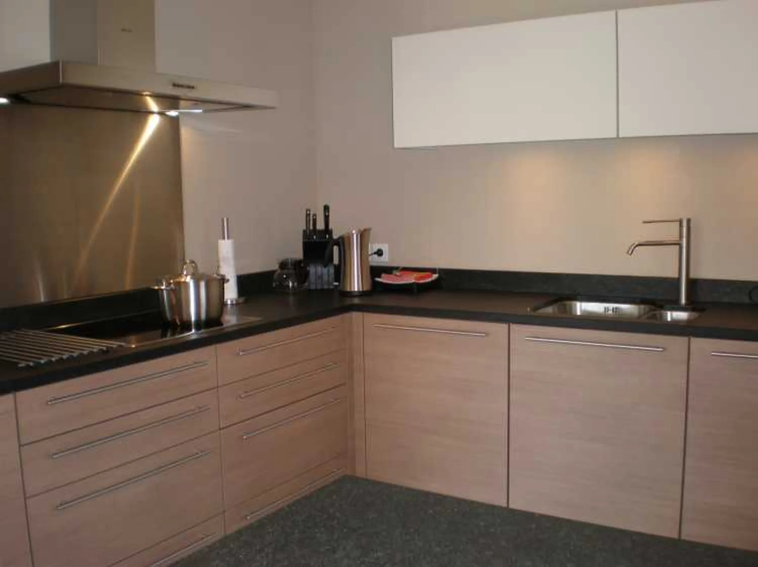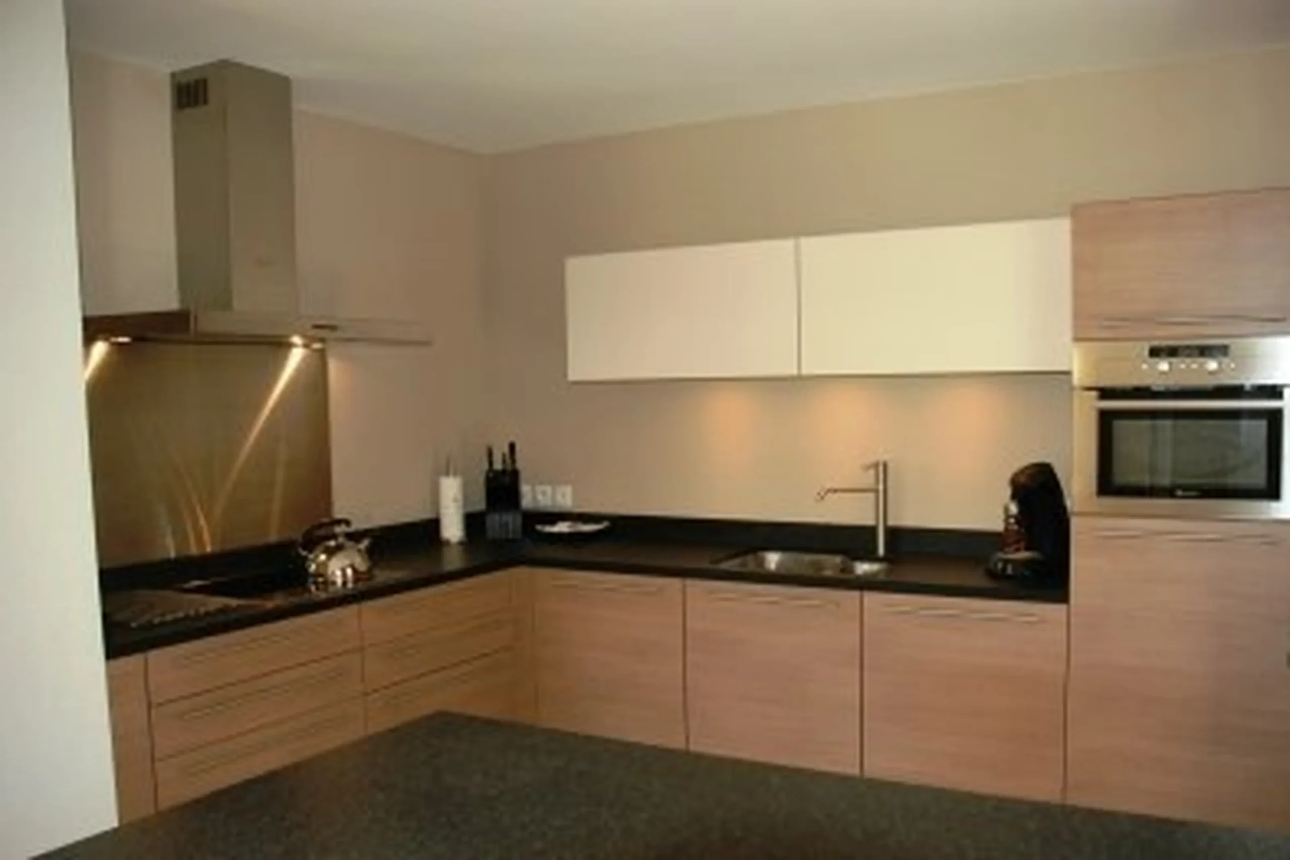 Keuken: Open keuken voorzien van vaatwasser, afzuigkap, 4-pits keramische kookplaat, koelkast met diepvriesvak, combi-magnetron, was-droogcombinatie, senseo/nespresso koffieapparaat. Toegangsdeur tot het balkon.