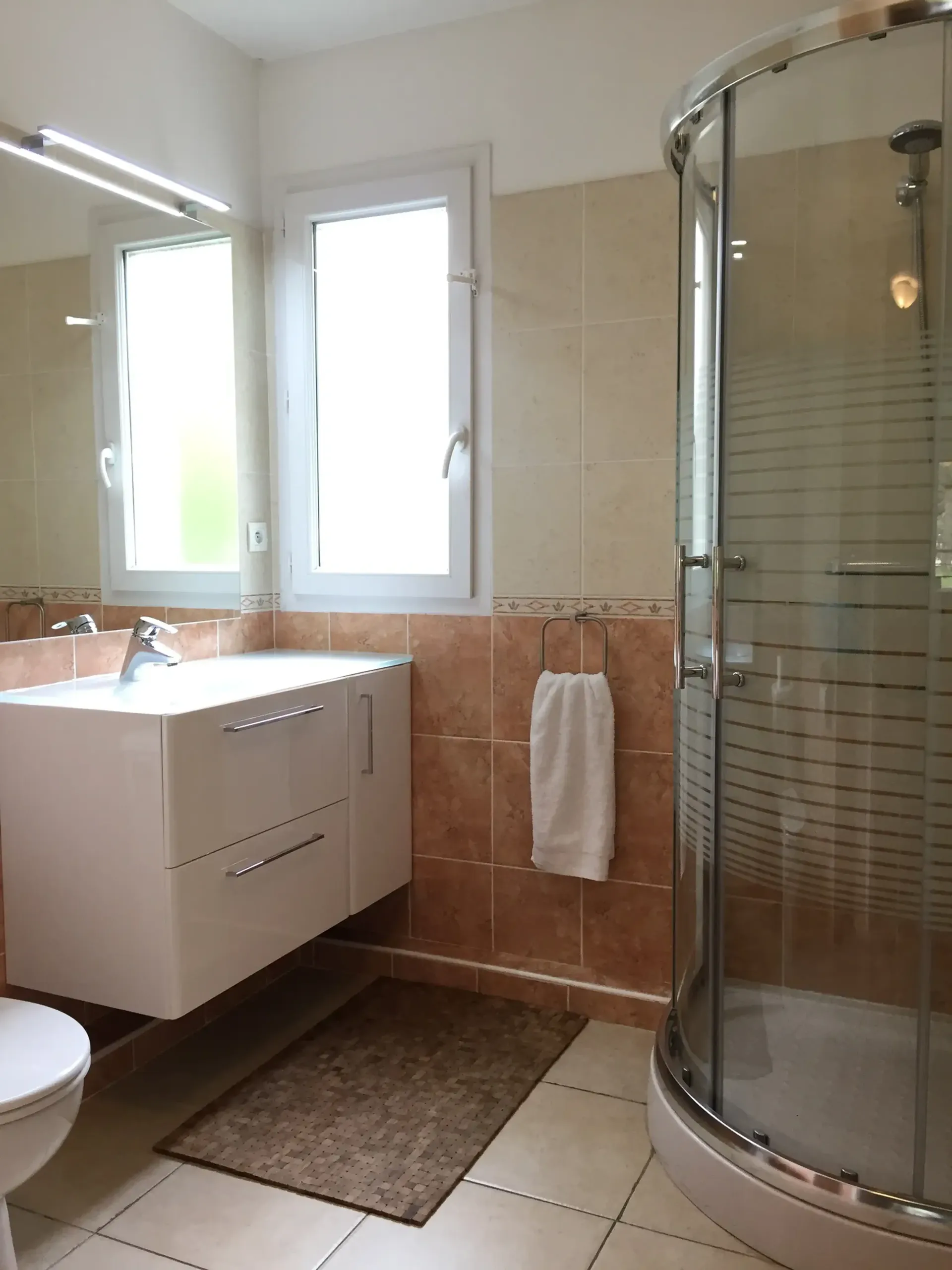 Badkamer 1: WC, wastafel en douchecabine