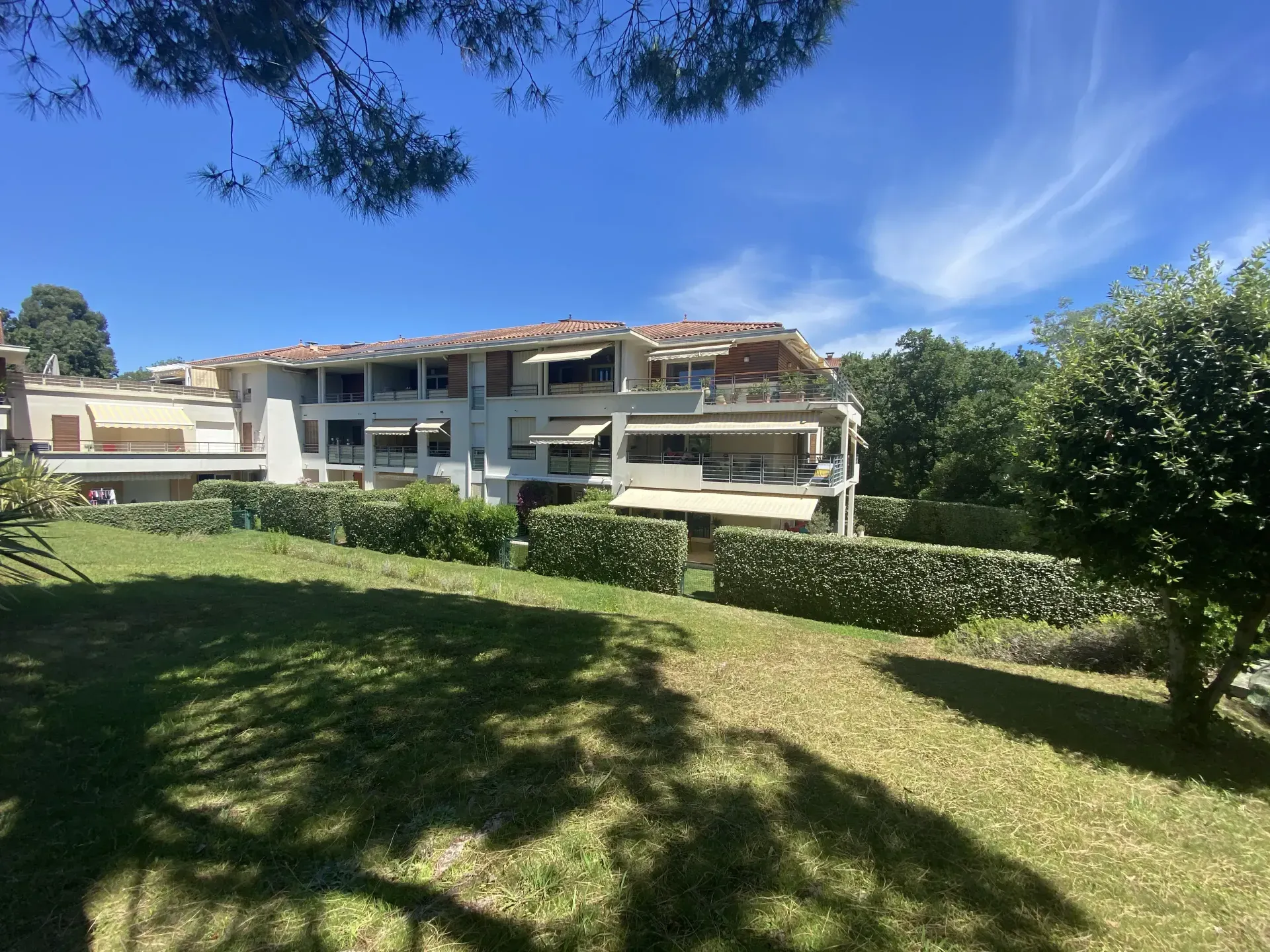 Het appartement ligt op een terrein dat met een automatisch hek wordt afgesloten (tijdelijke) bewoners hebben een toegangscode of afstandbediening om de entree te bedienen. Het appartement ligt op de 1e verdieping en beschikt over een groot hoekbalkon dat uitkijkt over de fraai aangelegde tuin met het daarin gelegen gemeenschappelijke zwembad dat alleen toegankelijk is voor de (tijdelijke) bewoners. Verder beschikt het appartement over een eigen parkeerplaats en garagebox.